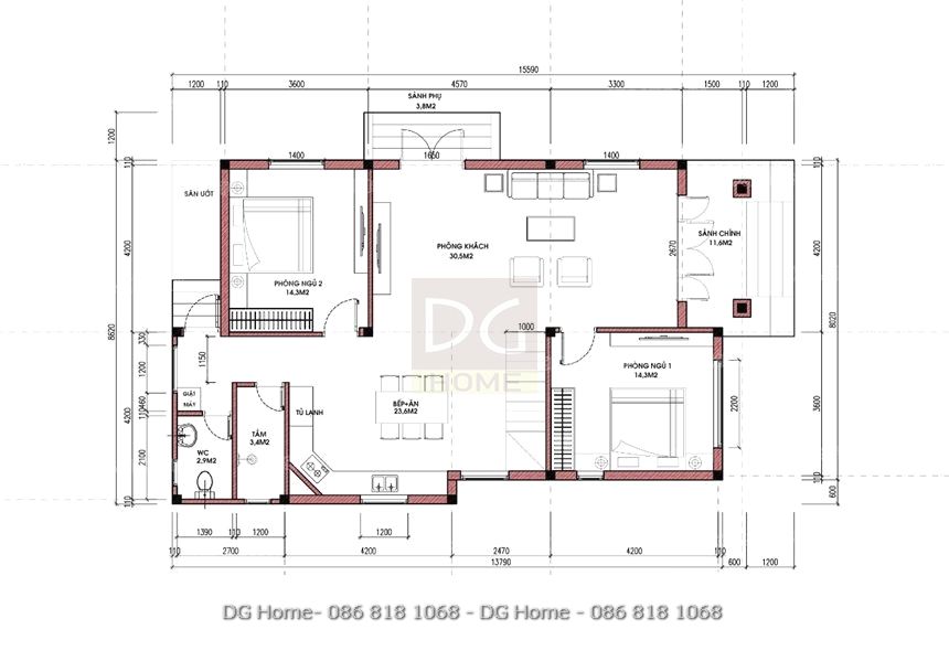 Để biết thêm thiết kế công năng của căn nhà, mời quý vị tham khảo bản vẽ đầy đủ dưới đây của DG Home